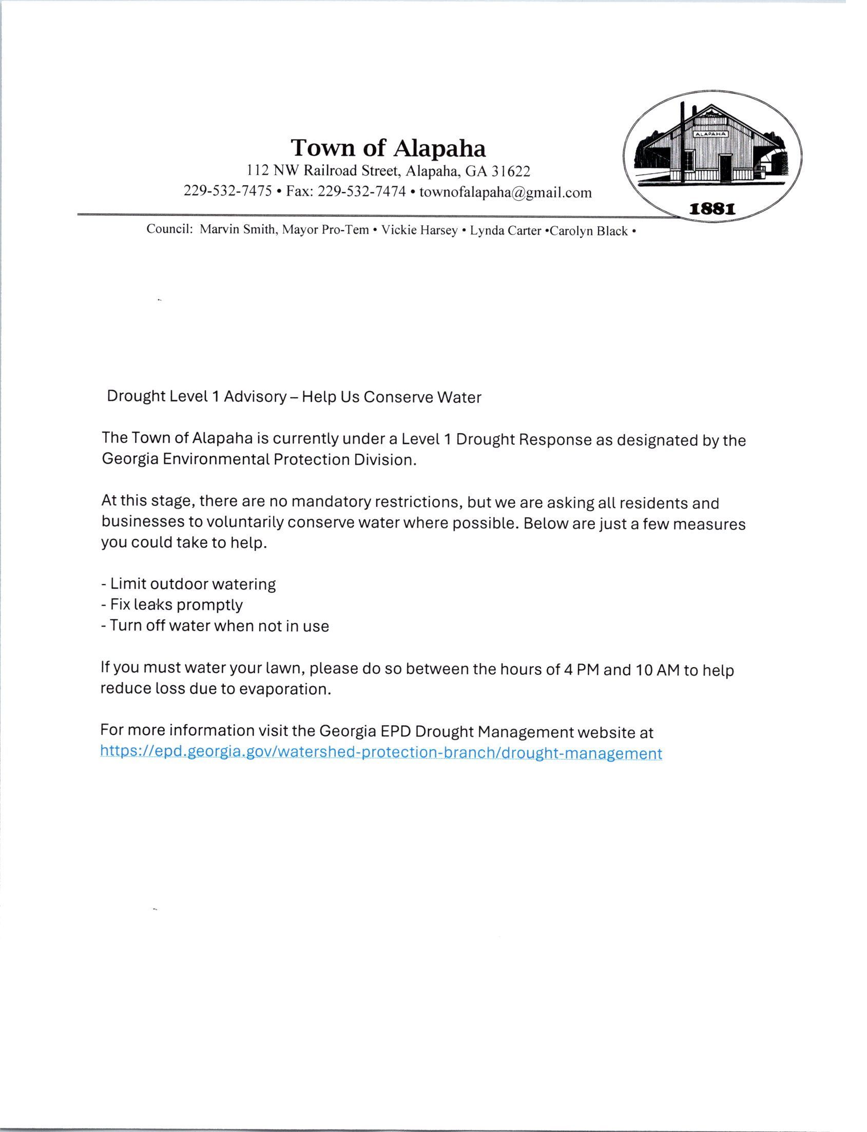 UPCOMING COUNCIL MEETING WILL BE SCHEDULED FOR MAY 5, 2026 AT 7PM IN THE ANNEX BUILDING LOCATED AT 112 NW RAILROAD ST. ALAPAHA, GA. 31622